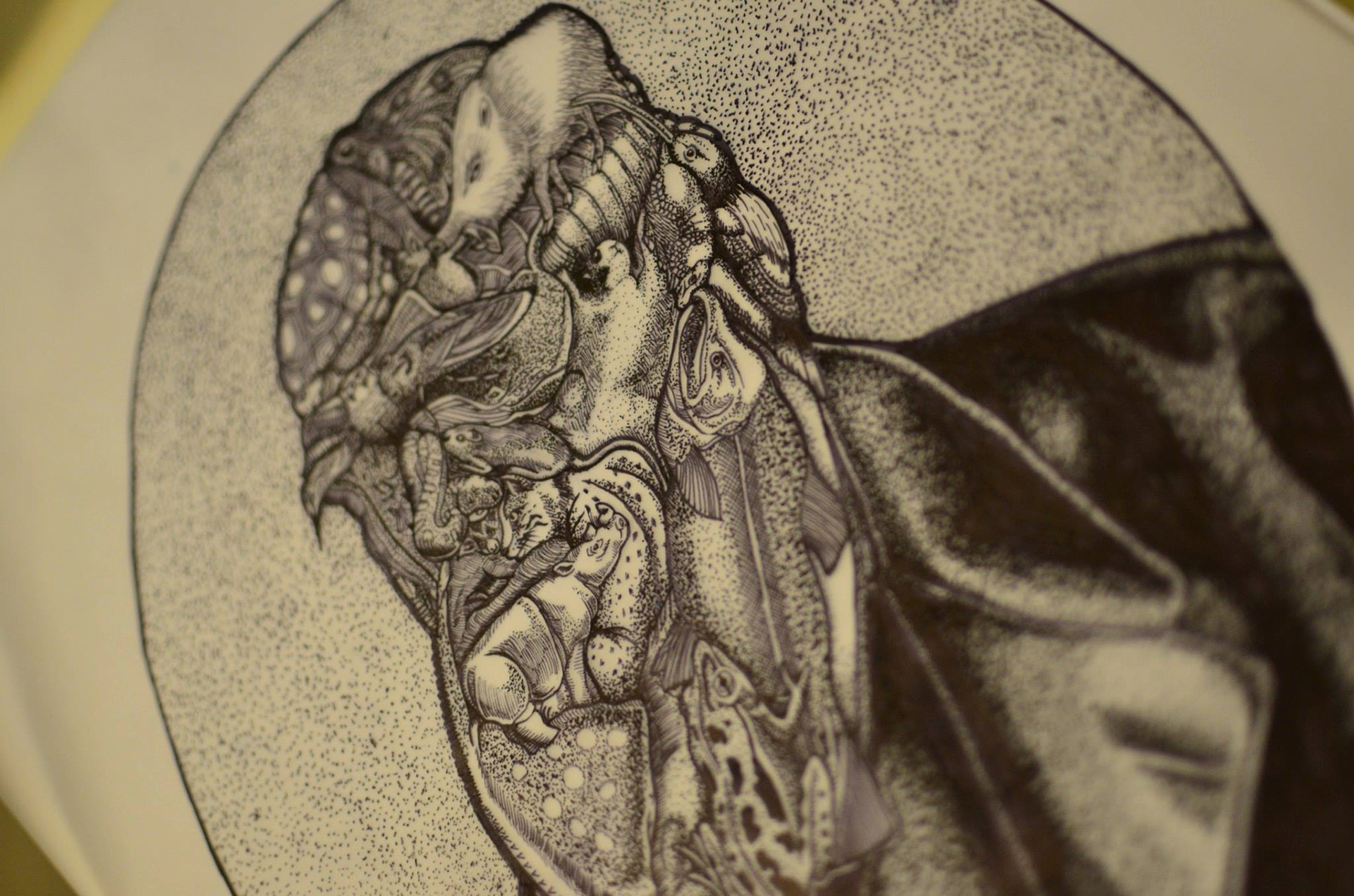 In my work, Darwin has become absorbed in his own studies to the point of camouflage. I show him to be adapted, evolved and absorbed all at once.